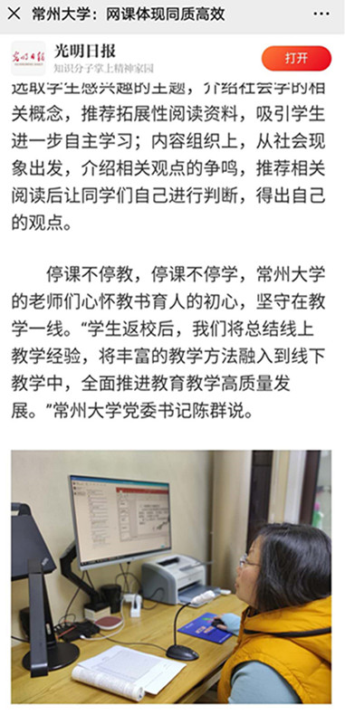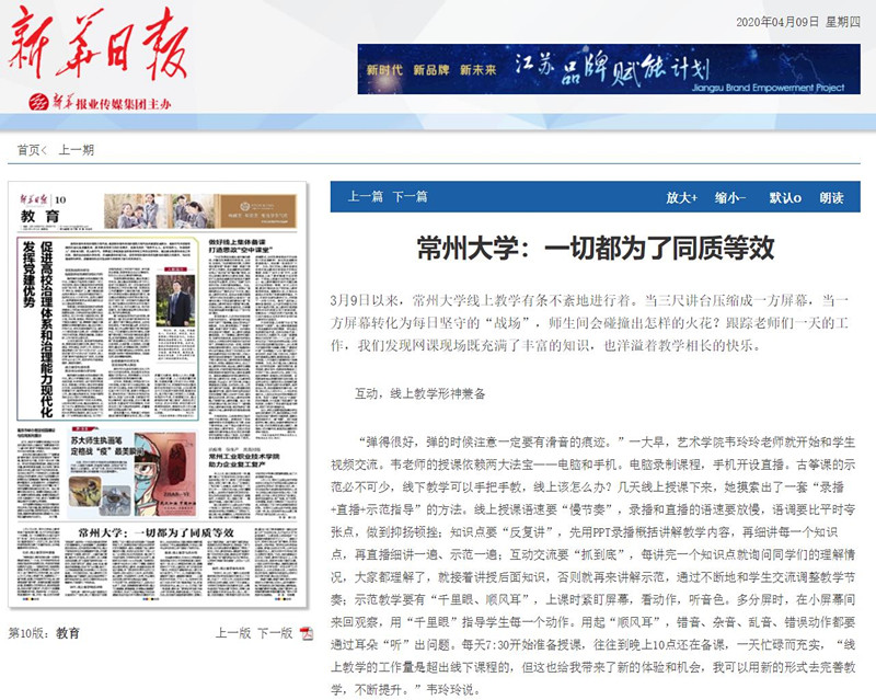新华日报聚焦报道我校线上教学。其中,两报都以一定篇幅报道了av直播 汪玲萍老师线上教学现场。