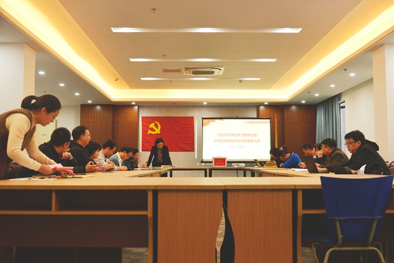 会上,学院全体党员就习近平总书记关于教育发展价值立场和根本动力的重要论述进行理论学习。