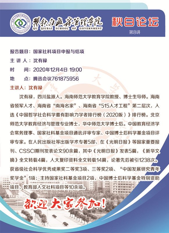 秋白论坛第8讲:国家社科项目申报与结项