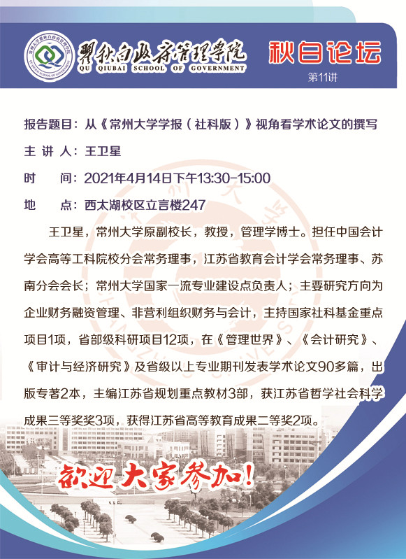 秋白论坛第11讲:从《av直播 学报(社科版)》视角看学术论文的撰写