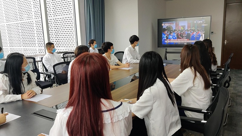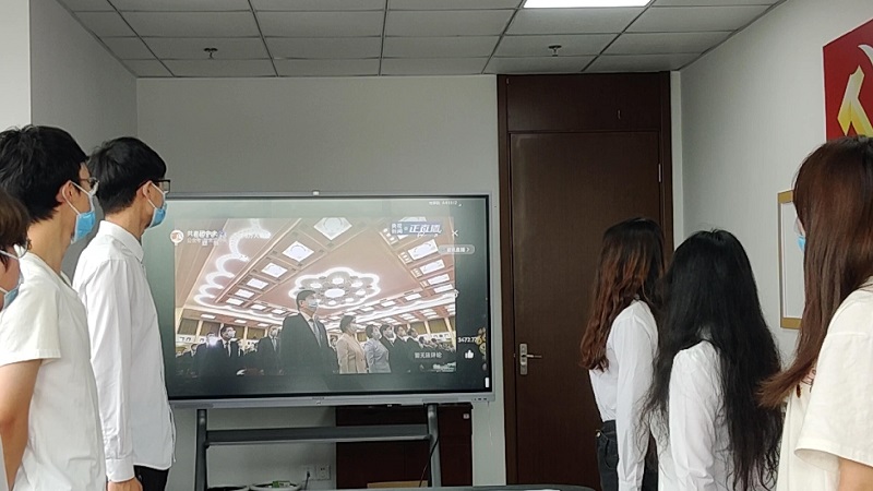 在直播过程中,学院团学骨干主动地起立跟唱国歌,积极地摘录和学习大会上发表的重要讲话和精神,尤其是对习近平总书记发表的讲话进行了重点学习。