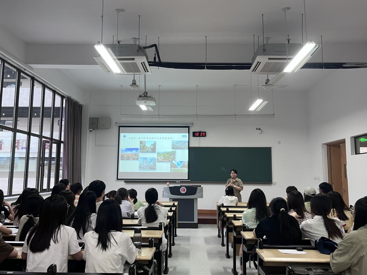讲座初始,刘老师邀请现场同学对自己居住的社区类型进行划分,从而引出“农民上楼”的社会现象。以数据和图像形式解读了“农民上楼”的内涵及特征,并启发大家运用“社会学想象力”去理解上楼农民所处的时代特征和他们的境遇。刘老师结合我国新型城镇化的发展进程以及实地调研资料指出“农民上楼”与城镇化变迁的联系,并结合“上楼之后”的具体矛盾与问题,探讨了人的现代化这一发展命题。最后,刘老师结合“村改居”社区建设案例向大家明确了社会学与社会工作学科的现实作用与价值使命。