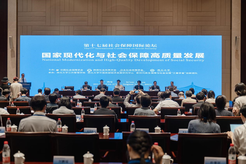 2023年8月26日至27日,第十七届社会保障国际论坛在西安市陕西宾馆举行,论坛由中国社会保障学会、韩国社会政策学会、日本社会政策学会和西北大学联合主办,本次大会主题为“国家现代化与社会保障高质量发展”。