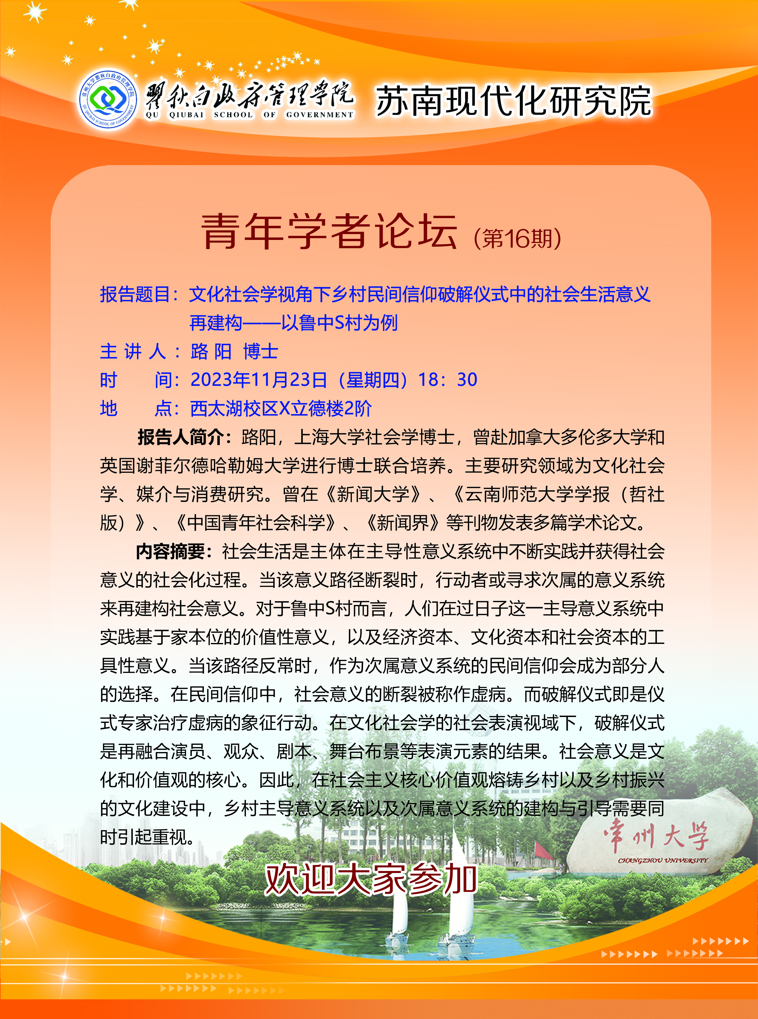 青年学者论坛第16期:文化社会学视角下乡村民间信仰破解仪式中的社会生活意义再建构——以鲁中S村为例