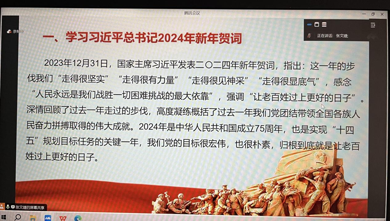 1月20日,av直播 研究生党支部依托腾讯会议开展线上理论学习,重点围绕习近平总书记二〇二四年新年贺词、习近平总书记在二十届中央纪委三次全会上的重要讲话内容进行集体学习。