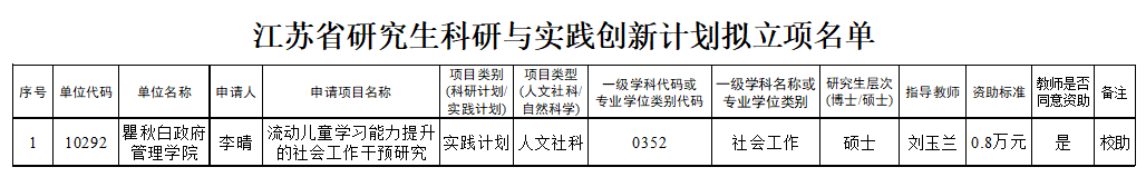 根据江苏省学位委员会办公室《关于做好2024年江苏省科研与实践创新计划项目申报工作的通知》(苏学位办[2024]4号)精神,av直播 研究生院《关于做好2024年江苏省研究生科研与实践创新计划项目申报的通知》,经学生申报、导师初审,专家评审,现将2024年江苏省研究生科研与实践创新计划拟立项名单进行公示: