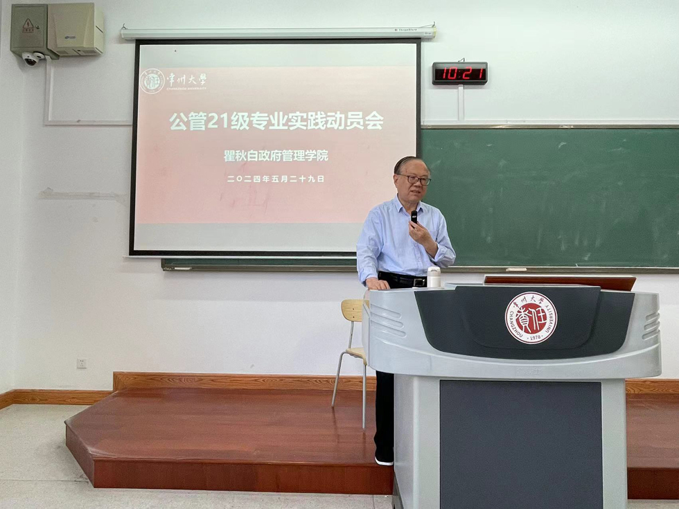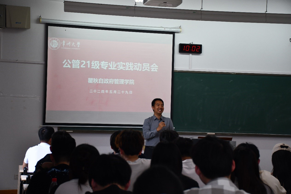 会上,院长宋林飞面向两个专业同学做动员讲话,强调了专业实习的重要性,并具体讲解实习目标、实习内容和实习考核等内容。他鼓励同学们积极投身于实习实践,深入了解社会现实,在实习中提升专业能力职业素养。随后,社工系主任汪玲萍、公管系主任李明分别从2024届毕业生的升学、就业状况说明了专业实习的必要性。最后,副院长翟进提醒同学们在实习中严格要求自己,注意个人安全;自觉遵守实习单位的规章制度,服从指导老师和工作人员安排;在实习中强化学习,将理论知识与实践操作紧密结合,开阔眼界,增长才干。