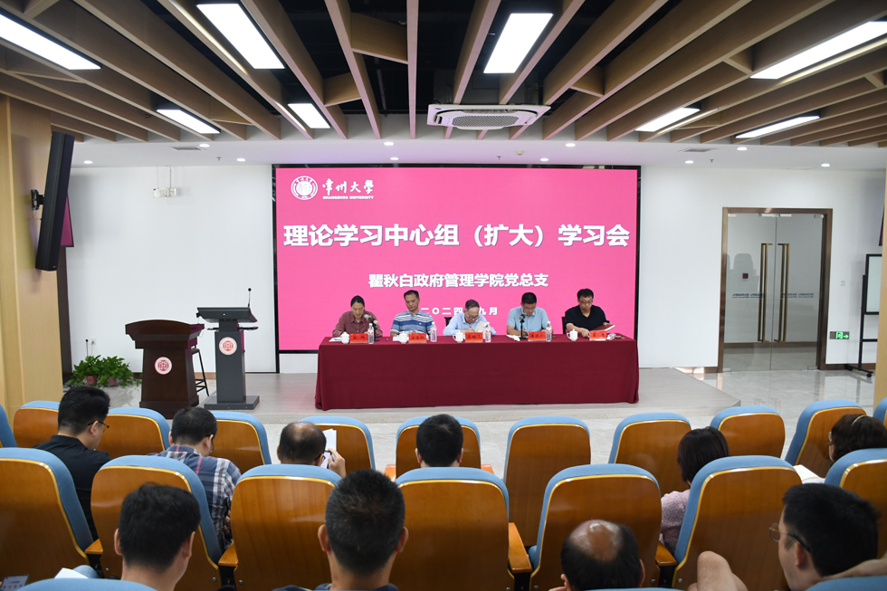 9月25日,学院在立言楼133会议室召开理论学习中心组(扩大)学习会。全体院领导班子和全体党员参加会议,会议由党总支书记潘道广主持。