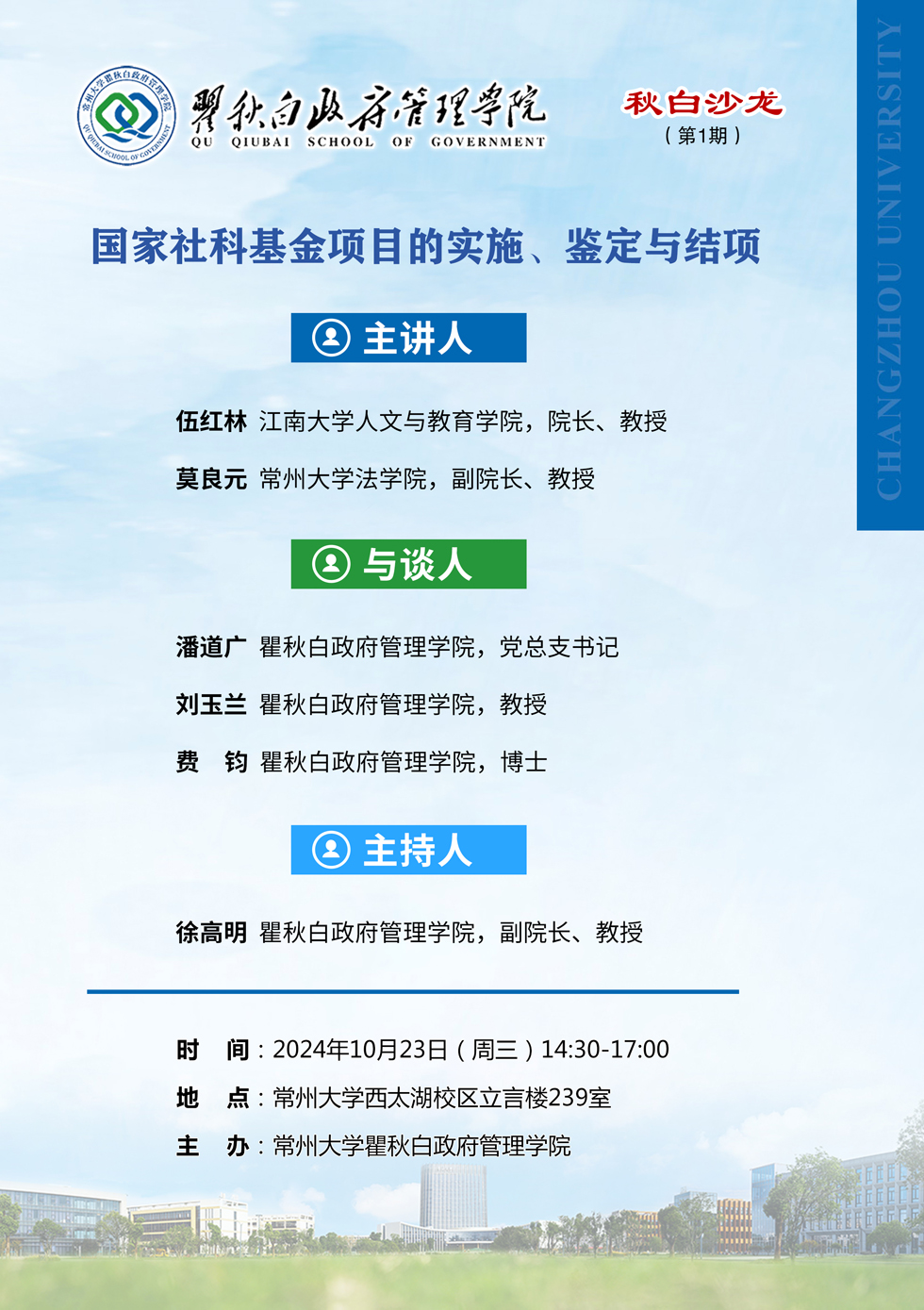 秋白沙龙(第1期)| 国家社科基金项目的实施、鉴定与结项