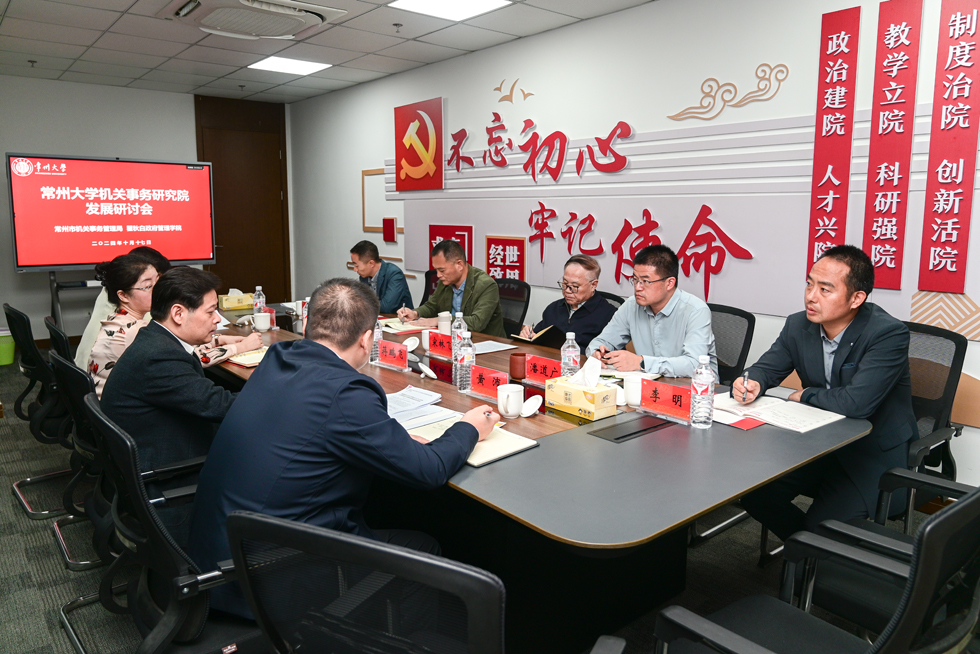 20241017日,av直播 机关事务研究院发展研讨会,在西太湖校区立言楼239会议室顺利举行。常州市机关事务管理局党组书记、局长蒋鹏飞,党组成员、副局长凌洁,办公室主任张秋霞,公共机构节能管理处处长黄沛等一行四人莅临此次研讨。