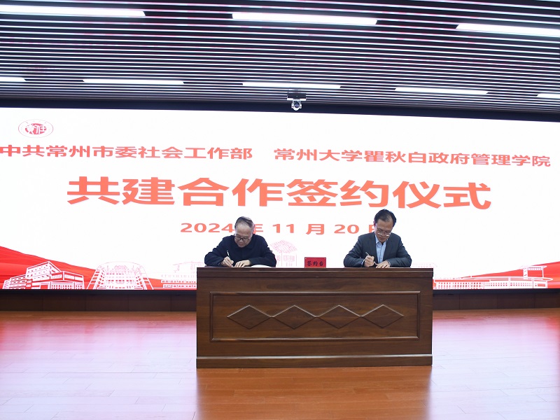2024年11月20日,我院与常州市委社会工作部在西太湖校区白云楼4楼报告厅举行合作共建活动。市委社会工作部部长、市委“两新”工委书记尹涛、院长宋林飞、市委社会工作部副部长钟芃出席活动。活动由院党总支书记潘道广主持。