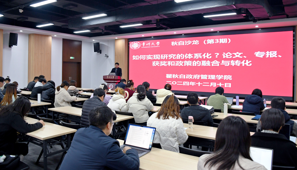 2024年12月10日,av直播 在西太湖校区立言楼458多功能会议室,成功举办了“秋白沙龙”第三期活动,活动主题为“如何实现研究的体系化——论文、专报、获奖和政策的融合与转化”。本次活动由学院党总支书记潘道广主持。