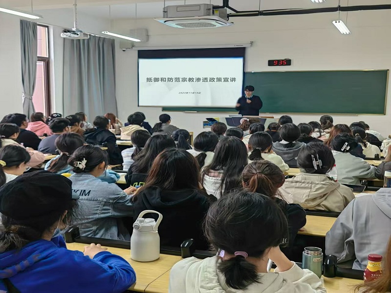 为维护广大师生的权益、建设和谐校园,做好抵御和防范宗教向校园渗透工作。11月18日上午,学院在立功楼233教室开展“抵御和防范宗教渗透”主题教育活动,此次活动由辅导员张剑主持,各班学生代表参加。
