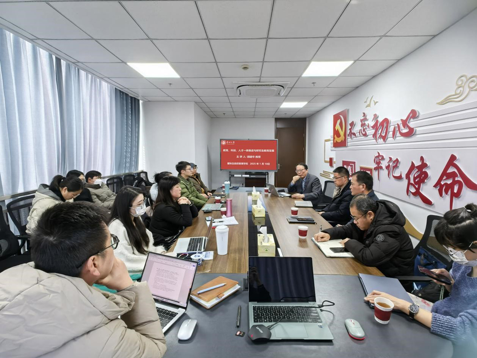 胡建华教授首先阐述了教育、科技、人才三者之间的紧密关系,强调了教育在其中的基础性地位与作用。他指出,研究生教育作为现代教育体系的最高阶段,在教育、科技、人才一体化发展中具有关键性的地位和作用,主要体现在其教育功能、研究功能和人才功能上。
