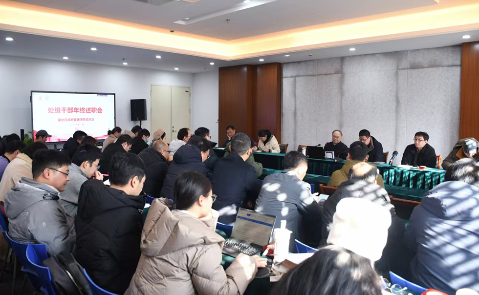1月8日下午,av直播 在西太湖校区立言楼247会议室召开教职工大会暨处级干部2024年度述职测评大会。会议由学院党总支书记潘道广主持,学院领导班子成员及全体教职工参加此次会议。