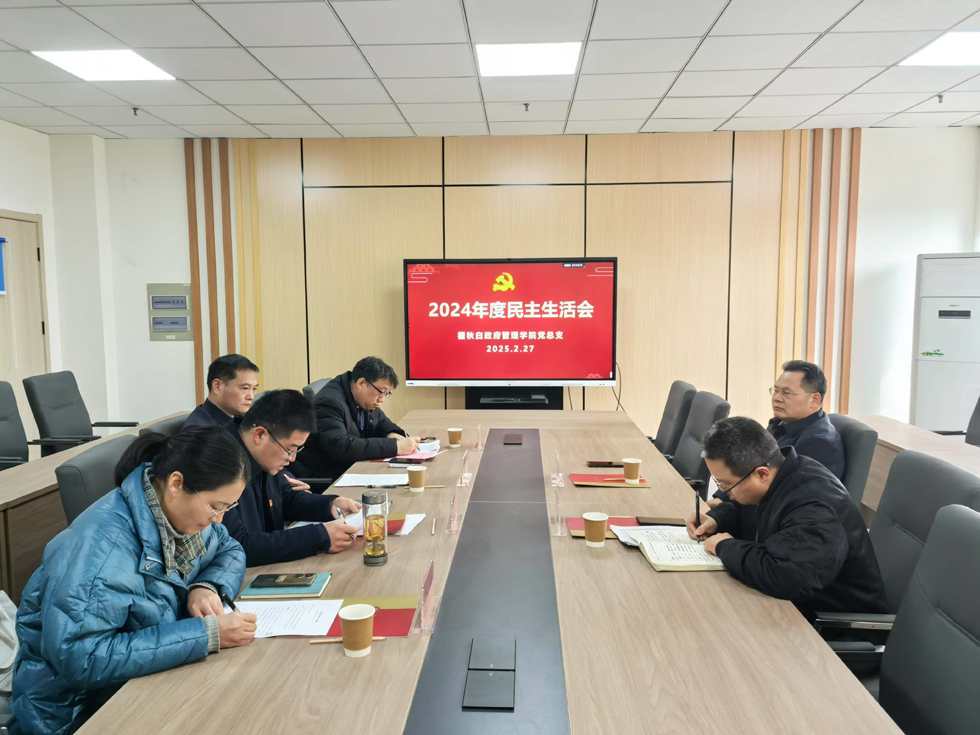 2月27日下午,学院党总支在科教城校区逸夫楼523会议室召开2024年度处级以上党员领导干部民主生活会。会议由党总支书记潘道广主持,校纪委书记、派驻监察专员沈新奎,学校督导组成员王文奎,以及学院处级领导干部出席。