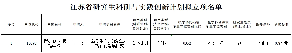 根据江苏省学位委员会办公室《关于做好2025年江苏省科研与实践创新计划项目申报工作的通知》(苏学位办[2025]1号)精神,av直播 研究生院《关于申报2025年江苏省科研与实践创新计划项目的通知》,经学生申报、导师初审,专家评审,现将2025年江苏省研究生科研与实践创新计划拟立项名单进行公示: