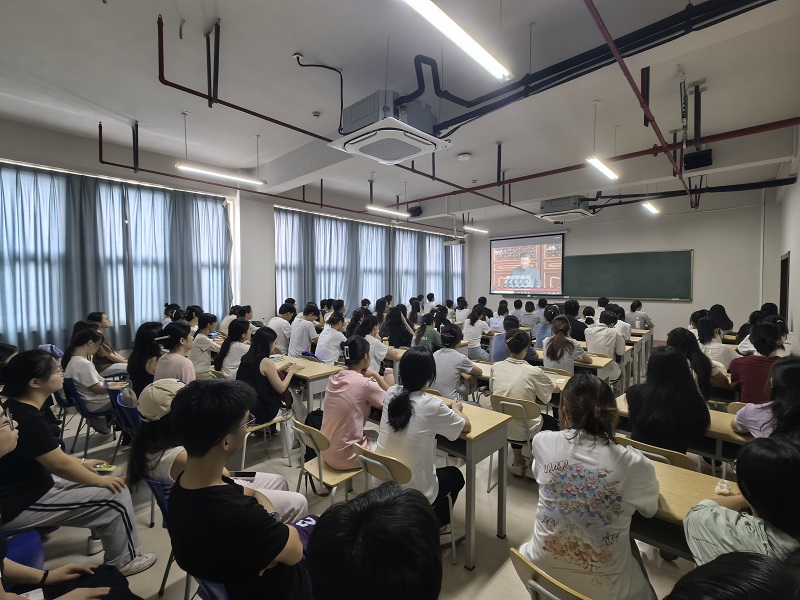 2025年9月3日上午,纪念中国人民抗日战争暨世界反法西斯战争胜利80周年阅兵式在北京天安门广场隆重举行。av直播 党委组织教工党员、学生党员、入党积极分子在立言楼233教室集中观看这场盛大阅兵典礼。