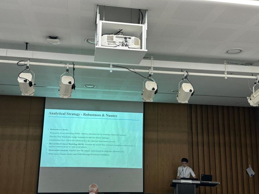 (2)会议交流情况:本次年会汇聚了来自全球社会保障研究领域的顶尖学者和实务界专家。黄冠教授作为参会代表,积极参与了会议的各项议程。根据会议日程,黄冠教授于2025年8月20日下午15:10在Session 6: New Issues in Social Security专题分会场发表了题为“A Quantitative Observation of the Efficiency of Digital Technology in Improving Child Protection and Welfare”的学术报告。该报告是他关于数字化技术在儿童保护与福利领域应用效率的最新研究成果。
