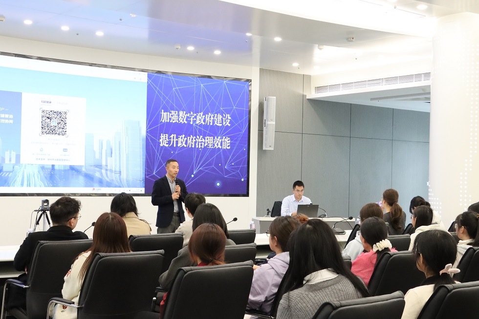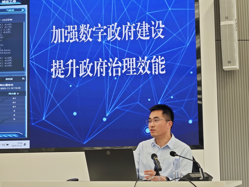 常州市城运指挥中心科技信息处副处长杨康对师生们的到来表示热烈欢迎,并以常州市“一屏观全城、一网管全城”为主题,为师生们带来了一场内容翔实、见解深刻的实践教学讲座。杨处长系统详尽地介绍了“常州市数字政府统一登录门户”的核心架构,重点阐释了其涵盖的AI应用、协同办公、研判指挥、数据资源、能力开放等在内的十大中心模块功能。同时,他深入剖析了“常治慧”数智平台在经济治理、城市治理、安全治理等多个关键领域实现“一网统管”的内在运行机理与卓越成效。常州市城市运行指挥中心始终坚持以“场景赋能、能力赋能、数据赋能、数字赋能”为驱动,所建成场景均向辖市(区)开放共享,正全力构建一个开放、协同、智能的城市数字应用新生态。