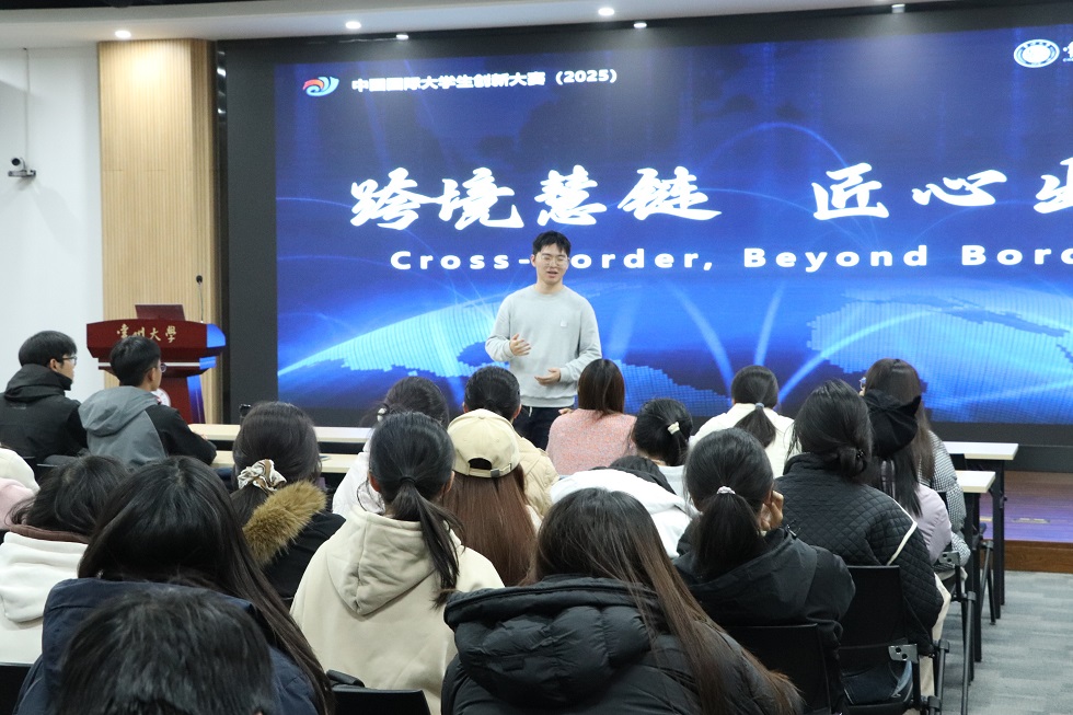 活动伊始,周璐瑶、冯靖翔、欧阳浩三位同学,围绕“橘白科技:跨境电商数智化服务先驱者”项目,从公司概况、行业痛点、核心优势、服务案例、团队构成及未来规划等方面展开介绍,生动展现了两位校友创业反哺母校的担当精神与创新实践。在经验分享中,冯靖翔结合自身参赛经历,鼓励同学们“锚定目标、把握机遇、坚定前行”;周璐瑶围绕沟通与抗压能力展开讲述,真实案例引发强烈共鸣;欧阳浩则系统梳理参赛流程与个人成长要点,激励大家勇于站上赛事舞台锻炼自我。互动环节中,同学们踊跃提问,围绕备赛策略、团队协作、难点突破等方面与分享嘉宾深入交流,现场气氛热烈。最后,院团委副书记(学生)叶德浩结合学院实际情况与自身参赛经验,为同学们推荐专业类的竞赛与选题,并鼓励同学们积极参加创新创业竞赛。