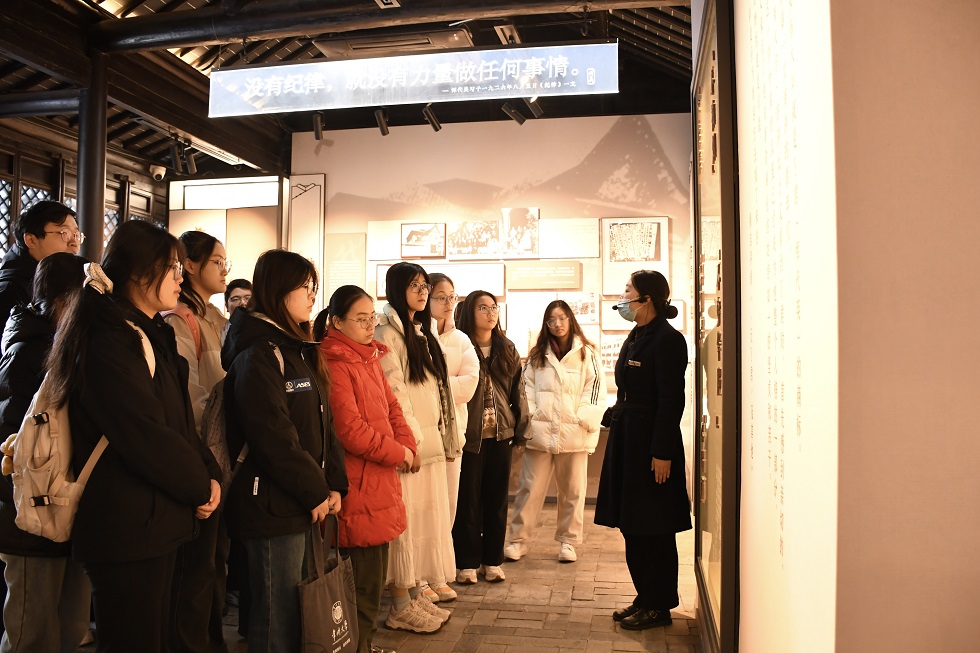 活动中,学生在讲解员的引导下有序参观了各个展区,通过详实的文字史料、珍贵的历史图片、生动的实物展品以及沉浸式场景还原,全面深入地了解了恽代英同志从青年求学、投身革命到英勇就义的光辉一生,彰显了他“利社会、利国家、利天下”的赤诚初心。恽代英同志始终坚定理想信念,将毕生精力奉献给了中国人民的解放事业,其“浪迹江湖忆旧游,故人生死各千秋。已摈忧患寻常事,留得豪情作楚囚”的革命气节,深深震撼着现场参观的学生。